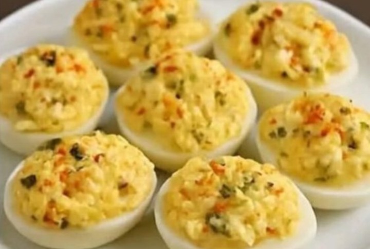 Spoon or pipe the yolk mixture into the hollowed egg whites.