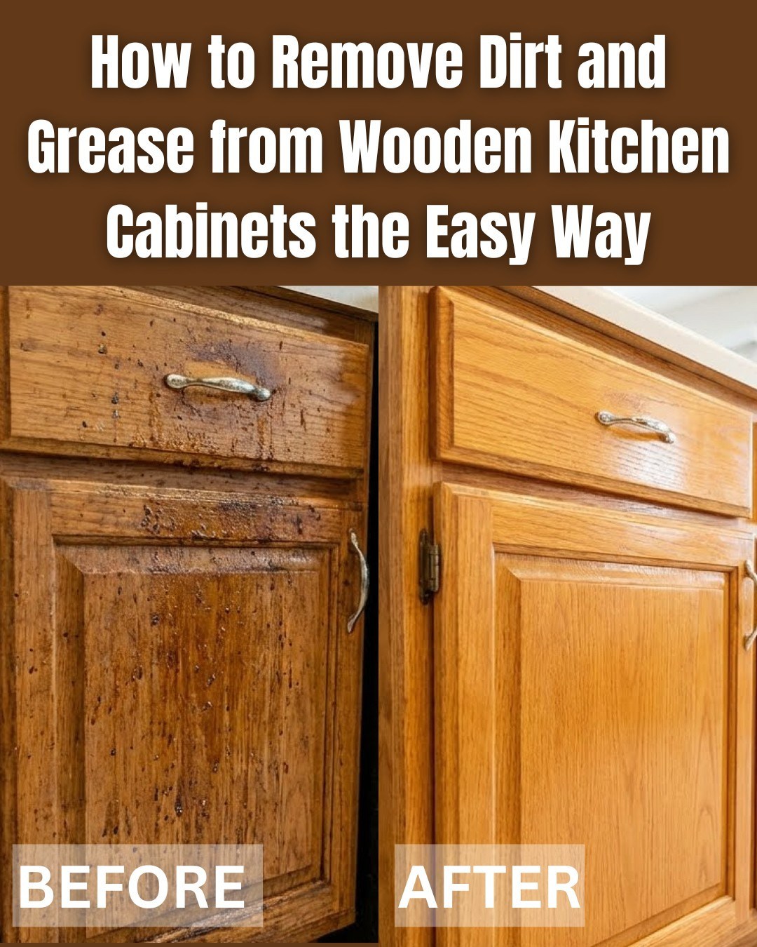 To remove grease stains, dilute some ammonia with water, then rub the solution into your cabinets. Use a damp cloth to go over the cabinets afterwards.