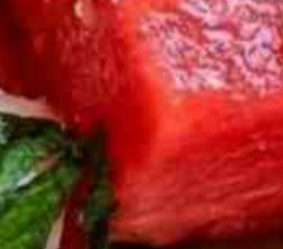 - In a large bowl, combine watermelon, cucumber, red onion, and mint.