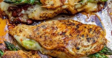 cheesy garlic asparagus stuffed chicken in a lemon butter sauce is the most delicious way to get your veggies in.Believe…