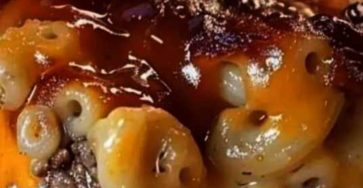 Macarrones con queso y pastel de carne al horno.