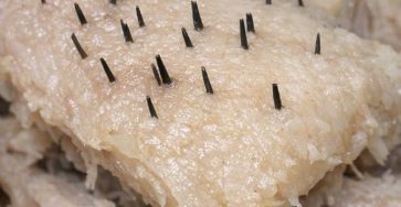 Started shredding the pork shoulder I had in the slow cooker and felt these hard, sharp spikes sticking out of the fat layer. They look like thick black wires and I’m grossed out. Did the butcher miss