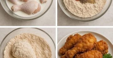 Crispy chicken thighs INGREDIENTS 6 chicken thighs 1 tablespoon of salt 200 ml (⅔ cup) of milk; 200 ml (⅔…
