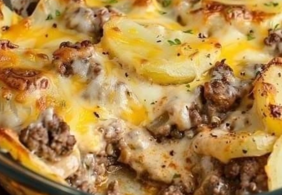 Ingredients1 small onion, chopped2 pieces of garlic, finely chopped1 cup of grated cheddar cheese1 cup of grated mozzarella cheese1 pound of minced beef4 cups of chopped potatoes1 can (10.75 ounces) mushroom soup concentrate1/2 cup of milk1 small spoon of paprikaAdd salt and pepper according to your preference.Fresh parsley, chopped finely, can be used as a garnish if desired.Tasty Cheeseburger Meatloaf Baked Chicken and PotatoesTasty Potato Nest with Cooked EggsPreparationHeat your oven to 375°F (190°C) before using it. Prepare a baking dish measuring 9 by 13 inches by greasing it and leaving it to the side.In a pan on medium heat, cook the ground beef until it is browned and broken into small pieces. Remove extra grease.Put chopped onions and crushed garlic in the pan with the ground beef. Cook the onions until they are soft and see-through, for around 5 minutes.In a big bowl, mix together the cooked ground beef, chopped potatoes, cheddar cheese, mozzarella cheese, mushroom soup, milk, paprika, salt, and pepper. Mix until everything is well blended.Pour the mix into the baking dish and spread it evenly.Put aluminum foil on the baking dish and bake in the oven that has been preheated for 45 minutes.Take off the cover and bake for another 15-20 minutes until the potatoes are soft and the cheese is melted and golden brown.Take it out of the oven and allow it to cool a bit before serving.Add some chopped parsley on top if you like, and serve while hot.