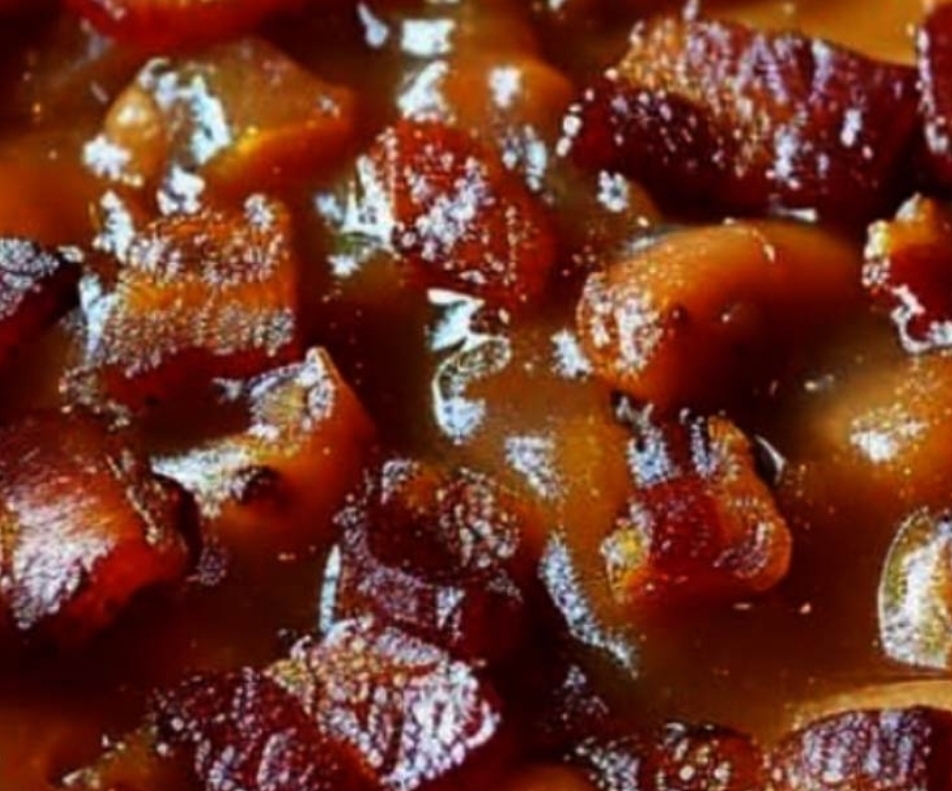 Preparing the Bacon: Cut the bacon into 1/2 inch pieces. Arrange these bacon pieces evenly across the top of the bean mixture in the baking dish. It is beneficial to slightly crumple each piece to increase the surface area that will crisp up during baking.
