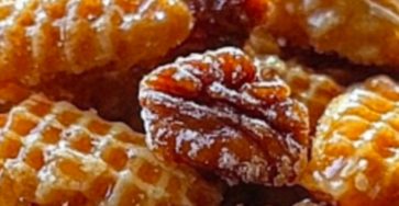 Ingredients:8 cups Crispix cereal (or your favorite crunchy cereal)2 cups pecan halves (or a mix of your favorite nuts)1 cup…