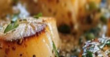 Four servings of Marjorie’s Baked ScallopsOne pound of washed and patted dry sea scallops2 teaspoons melted unsalted butter3 minced garlic…