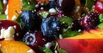 Ingredients: cups mixed salad greens1 peach, sliced1 cup fresh blueberries1/2 cup crumbled feta cheese1/4 cup chopped pecans1/4 cup balsamic vinegar1/2…