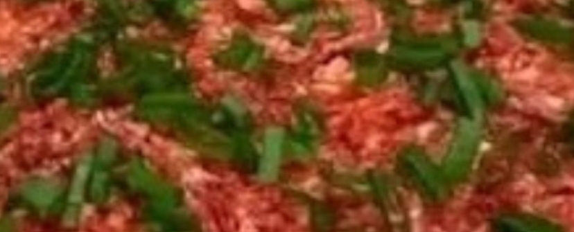 - Spread a thin layer of the meat mixture on the bottom of the prepared baking dish.