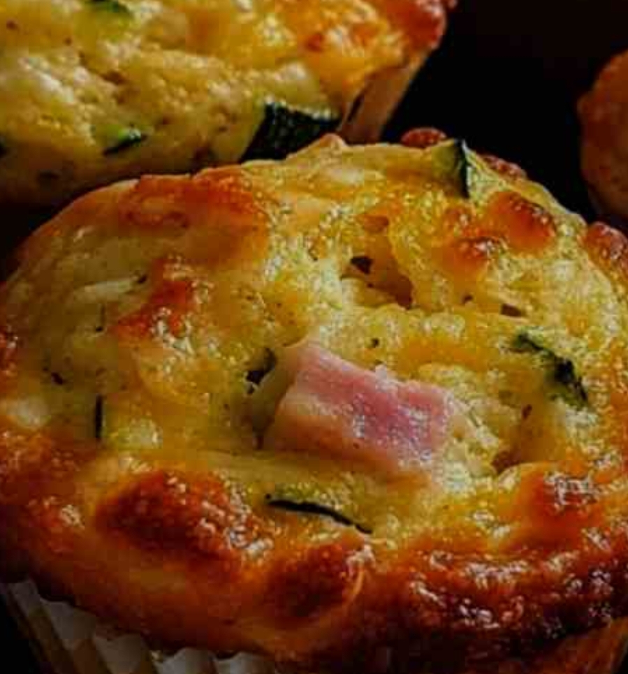Preparation TimePrep Time: 15 minutesCook Time: 20 minutesTotal Time: 35 minutesServings: 12 muffinsIngredientsAll-Purpose Flour: 1½ cups (190 g)Baking Powder: 2 teaspoonsSalt: ½ teaspoonZucchini: 1 medium (about 1 cup), grated and squeezed to remove excess moistureHam: ½ cup (75 g), dicedCheddar Cheese: 1 cup (100 g), gratedEggs: 2 largeMilk: ½ cup (120 ml)Olive Oil ¼ cup (60 ml)Garlic Powder (optional): ¼ teaspoonBlack Pepper: To tasteInstructions:Preheat the Oven:Preheat your oven to 180°C (350°F). Grease a 12-cup muffin tin or line it with paper liners.Prepare the Dry Ingredients:In a large bowl, combine the flour, baking powder, salt, garlic powder (if using), and black pepper. Mix well.Mix the Wet Ingredients:In another bowl, whisk together the eggs, milk, and olive oil until well combined.Combine the Batter:Add the wet ingredients to the dry ingredients and stir until just combined. Do not overmix.Fold in the grated zucchini, diced ham, and grated cheddar cheese.Fill the Muffin Tin:Divide the batter evenly among the prepared muffin cups, filling each about three-quarters full.Bake:Bake in the preheated oven for 20-25 minutes, or until a toothpick inserted into the center comes out clean.Cool and Serve:Let the muffins cool in the tin for 5 minutes before transferring them to a wire rack to cool completely. Serve warm or at room temperature.5 Serving SuggestionsPair with a fresh green salad for a light meal.Serve alongside scrambled eggs for a hearty breakfast.Enjoy with a dollop of sour cream or cream cheese for extra flavor.Pack in lunchboxes as a tasty snack.Serve warm with a side of tomato soup for a cozy combination.5 Cooking TipsRemove Moisture from Zucchini: Squeeze the grated zucchini well to avoid soggy muffins.Customize the Cheese: Swap cheddar for Parmesan, feta, or a mix of cheeses for different flavors.Add Herbs: Mix in fresh or dried herbs like parsley, thyme, or chives for added freshness.Use Whole Wheat Flour: Substitute half of the all-purpose flour with whole wheat flour for a healthier option.Reheat Before Serving: Warm the muffins slightly in the microwave or oven before serving for the best taste.Nutritional BenefitsZucchini: Low in calories and high in vitamins A and C, potassium, and fiber.Ham: A good source of protein and iron.Cheese: Provides calcium and protein for strong bones and muscles.Dietary InformationVegetarian: No (omit ham or replace with plant-based alternatives for a vegetarian version).Gluten-Free: No (use gluten-free flour to make it gluten-free).Dairy-Free: No (use dairy-free cheese and plant-based milk for a dairy-free option).Nutritional Facts (Per Muffin)Calories: 150 kcalProtein: 7gFat: 8gCarbohydrates: 12gFiber: 1gSugar: 1gStorageRefrigeration: Store in an airtight container in the refrigerator for up to 3 days.Freezing: Wrap individual muffins in plastic wrap and store in a freezer-safe bag for up to 2 months. Thaw at room temperature and reheat before serving.Reheating: Warm in the oven at 180°C (350°F) for 5-7 minutes or in the microwave for 15-20 seconds.Why You’ll Love This RecipeQuick and easy to prepare, perfect for busy mornings.A delicious way to sneak in veggies for kids and adults alike.Customizable with your favorite add-ins like herbs, spices, or other cheeses.Great for meal prep and make-ahead snacks.A savory alternative to sweet muffins for a refreshing change.ConclusionCheesy Zucchini and Ham Muffins are a versatile, savory treat that’s perfect for any time of day. Their combination of soft zucchini, savory ham, and melted cheese makes them both nutritious and delicious. Whether you’re making them for breakfast, snacks, or even a light meal, these muffins are sure to impress with their flavor and ease of preparation.Enjoy!