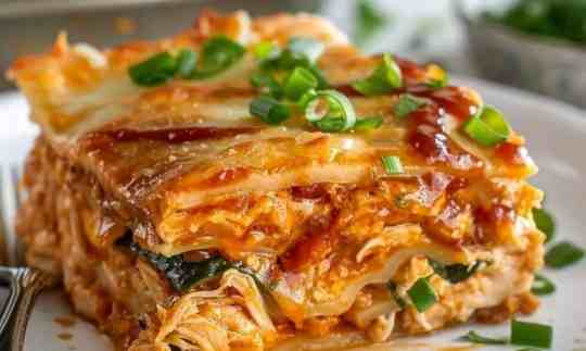 – Repeat the layers (noodles, filling, sauce) two more times, ending with a layer of sauce on top.