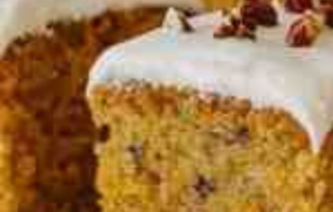 - Spread the frosting over the cooled cake and garnish with extra pecans if desired.