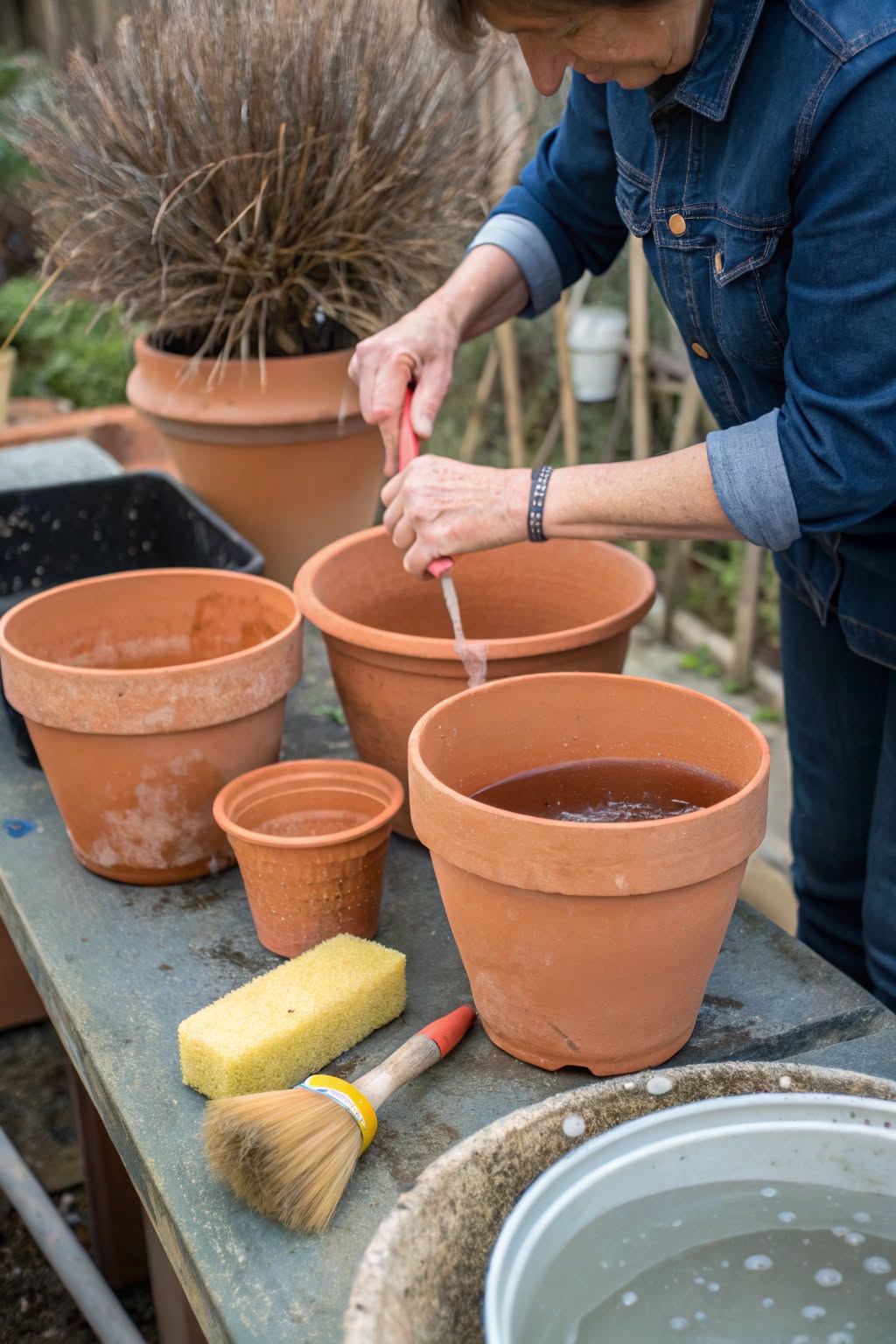6. To remove mineral deposits and limescale, mix equal parts white vinegar and water and soak the clay pot for a few hours. Scrub gently with a brush before rinsing.