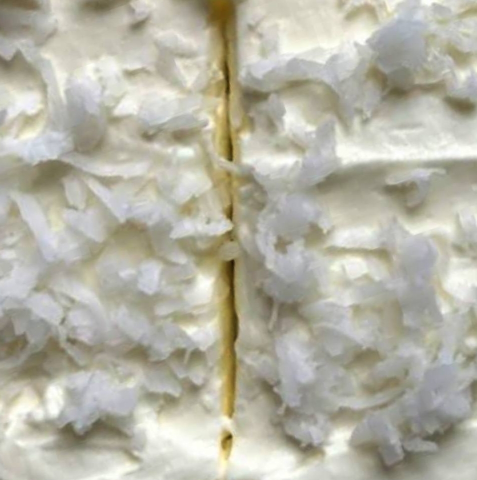 Spread the whipped topping over the cooled cake and sprinkle shredded coconut.
