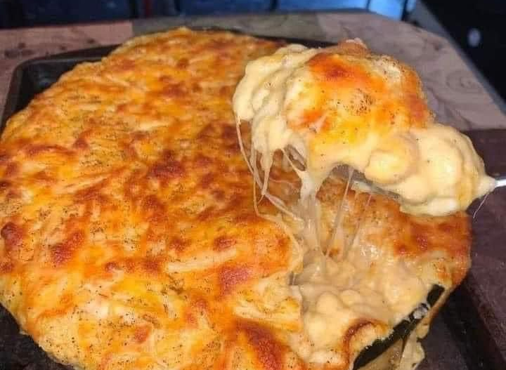 Transfer to your baking dish and top with 1 cup reserved sharp cheddar cheese.