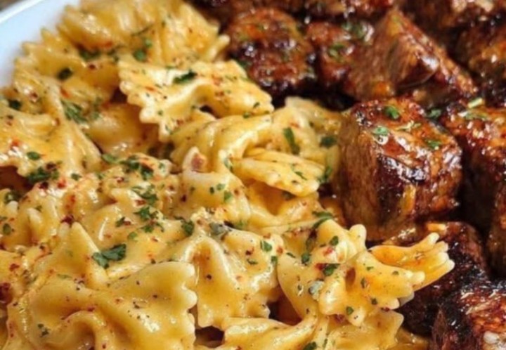 Indulge in a rich and flavorful dish featuring tender chicken cooked in a luscious creamy garlic butter sauce, paired with perfectly cooked linguine in a velvety Alfredo sauce. This dish brings together the perfect balance of savory flavors and creamy textures, making it an ideal comfort meal for any occasion.