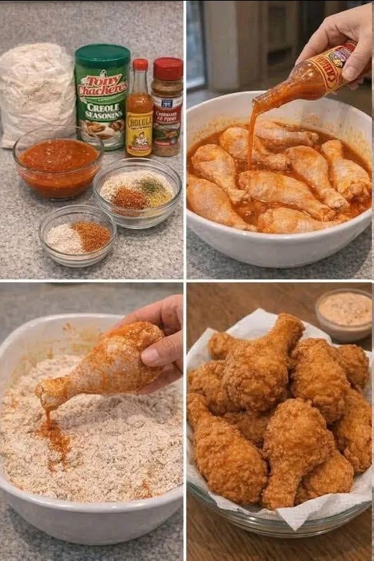 1. Prepare the Marinade: In a large mixing bowl, combine the hot sauce with cayenne pepper and one tablespoon of Creole seasoning. Stir until the mixture is smooth and evenly blended. Place the chicken drumsticks into the bowl, ensuring each piece is thoroughly coated. Cover the bowl with plastic wrap and refrigerate for at least 2 hours, preferably overnight, to allow the flavors to penetrate deeply into the meat.