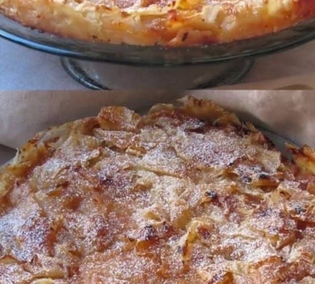I made this recipe by trial and error. I love apple pies but sometimes do not have time to make crusts so I came up with this. The recipe is easy and quick to make and served warm with ice cream makes a nice company desert. As you can see my Hubby didn’t let me get my picture before digging in.