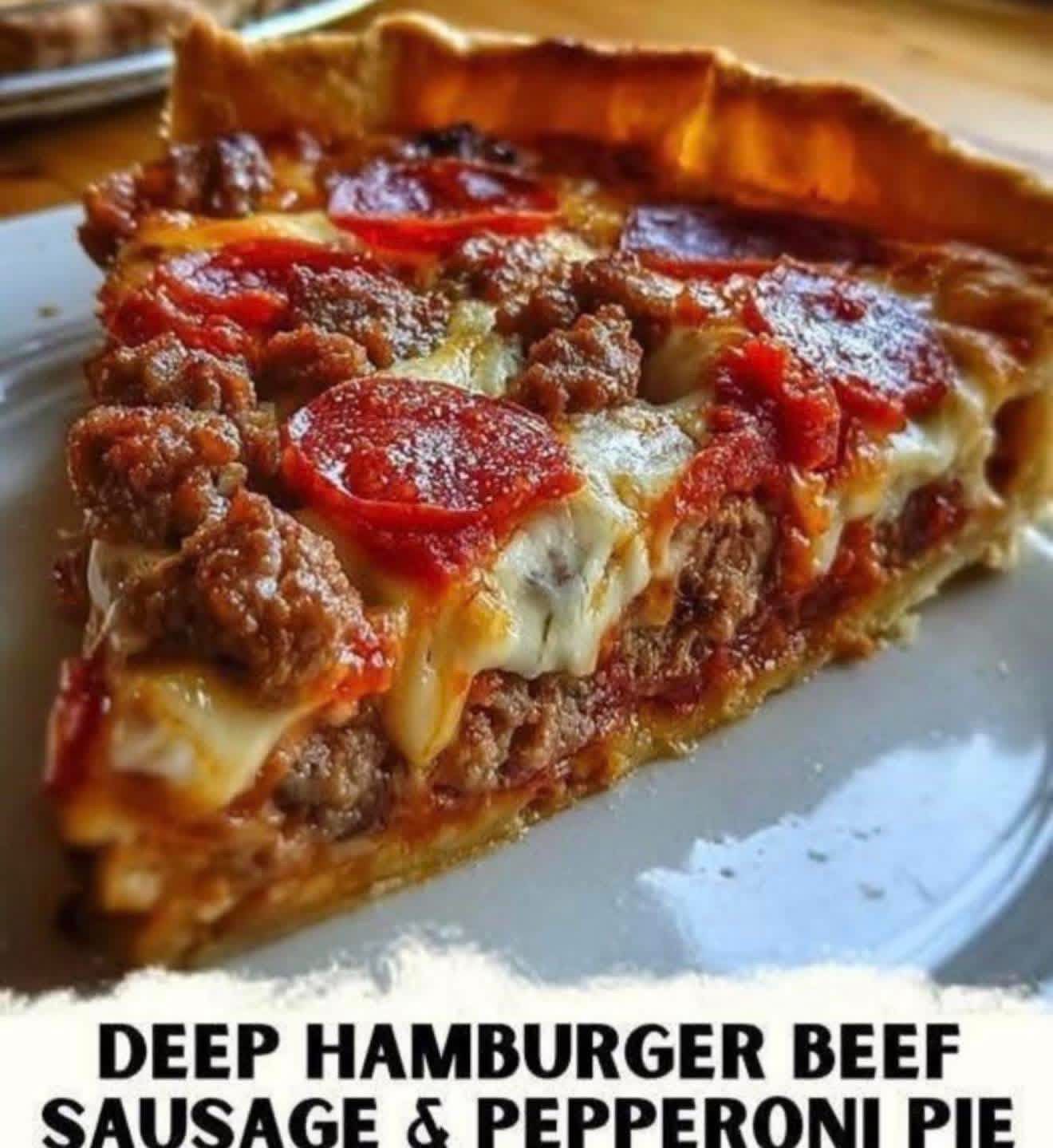 Deep Hamburger Beef Sausage & Pepperoni Pie is the perfect dish when you want something hearty, flavorful, and deeply comforting. Every slice delivers a rich blend of savory meats, gooey cheese, and a satisfying crust that ties everything together. It’s a dish that brings people to the table and keeps them coming back for seconds. Whether you make it for a cozy weeknight meal or a special gathering, this pie is guaranteed to become a new favorite. Enjoy the warmth, the flavor, and the joy of sharing a truly delicious homemade creation.