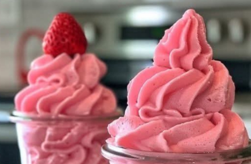 1. Step 1: In a blender, add the cream, whipped cream, condensed milk, and strawberry juice. Mix everything well. You can choose a different flavor of juice if you prefer. Then add the colored sprinkles and mix well.