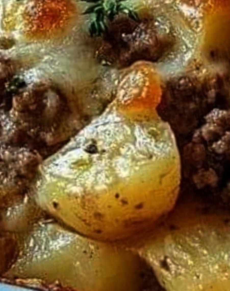 Ingredients1 lb ground beef – Lean or extra-lean is ideal to prevent excess grease.4-5 medium-sized potatoes – Russet or Yukon Gold work best for this recipe.1 small onion, diced – Adds a bit of flavor and texture.1 can cream of mushroom soup – The base for the creamy sauce. Cream of chicken or celery can be used if you prefer.1/2 cup milk – To thin out the sauce a little.1-2 cups shredded cheddar cheese – For that cheesy goodness. Feel free to adjust based on preference.Salt and pepper to tasteOptional: garlic powder, paprika, or dried herbs – To add a bit of depth to the flavor.PreparationPreheat the OvenSet your oven to 350°F (175°C). This allows the casserole to bake evenly and ensures the ingredients meld together beautifully.Prepare the PotatoesWash, peel, and slice the potatoes into thin, round slices, about 1/8-inch thick. Consistency is key here, so the potatoes cook at the same rate. Set them aside.Cook the Ground BeefIn a large skillet over medium heat, brown the ground beef until it’s no longer pink. Break it up into small crumbles as it cooks, and add the diced onions. Cook for another 2-3 minutes until the onions are softened. Drain any excess grease and season with salt, pepper, and any optional spices or herbs.Prepare the Creamy SauceIn a medium bowl, mix together the can of cream of mushroom soup and milk until smooth. This mixture will help keep the casserole moist and creamy as it bakes.Layer the IngredientsGrease a 9×13-inch baking dish lightly with cooking spray or butter. Start by layering half of the sliced potatoes on the bottom of the dish. Sprinkle a bit of salt and pepper over the potatoes. Add half of the cooked ground beef mixture on top of the potatoes, followed by half of the soup mixture. Repeat with another layer of potatoes, ground beef, and soup.Add Cheese on TopSpread the shredded cheddar cheese evenly over the top layer. This will create a delicious golden, bubbly crust as it bakes.Bake the CasseroleCover the baking dish with aluminum foil and bake in the preheated oven for 1 hour. After an hour, remove the foil and bake for an additional 15-20 minutes, or until the potatoes are tender and the cheese is melted and slightly browned.Serve and EnjoyLet the casserole cool for a few minutes before serving. This dish is great as it is, but you can also garnish with fresh parsley, chives, or green onions for added flavor and a pop of color.Tips for Success:Thinly Slice the Potatoes: Thin, even slices help the potatoes cook evenly. Using a mandoline slicer can ensure uniform thickness and reduce prep time.Add More Veggies: For a boost in flavor and nutrients, you can add veggies like bell peppers, mushrooms, or carrots to the ground beef mixture.Try Different Cheeses: While cheddar is a classic choice, mozzarella, Monterey Jack, or even pepper jack can add a new twist.Make Ahead: You can prepare the casserole the night before, cover it tightly, and refrigerate. When you’re ready to bake, let it sit at room temperature for about 15 minutes, then bake as directed.Why You’ll Love This Recipe:Simple Ingredients: You likely have most of these items in your kitchen already.Easy Prep: With basic steps and minimal equipment, this recipe is straightforward and hassle-free.Family-Friendly: It’s a classic comfort food that’s filling and flavorful, perfect for a cozy night in with loved ones.Enjoy !