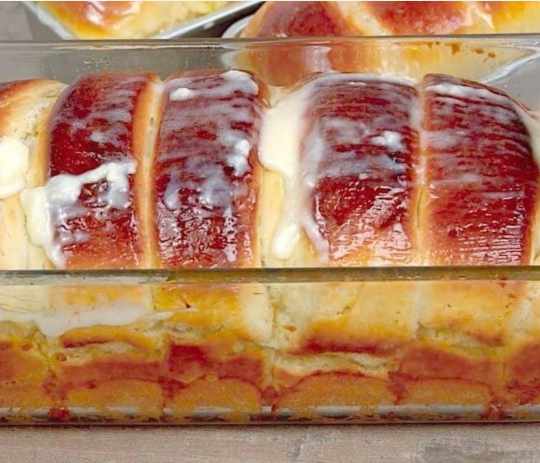 Whisk warm milk with sugar and condensed milk. Add the dry yeast and an egg, whisk again. Combine liquids with dry ingredients – flour and salt.