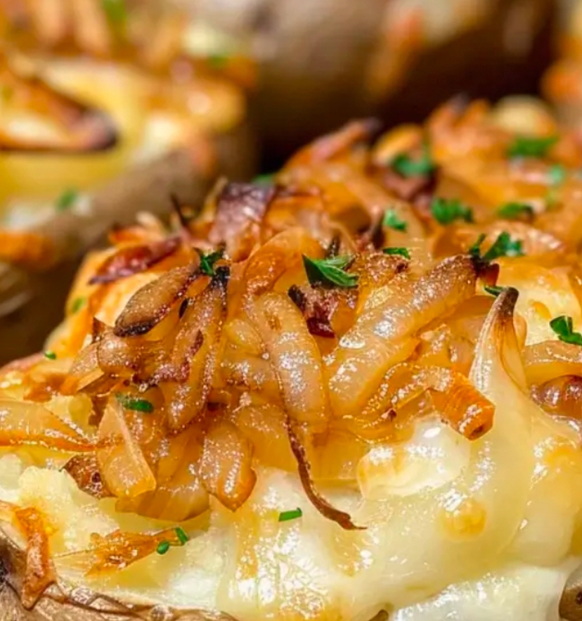 - Rich and Comforting: Combines the savory flavors of French onion soup with the heartiness of baked potatoes.