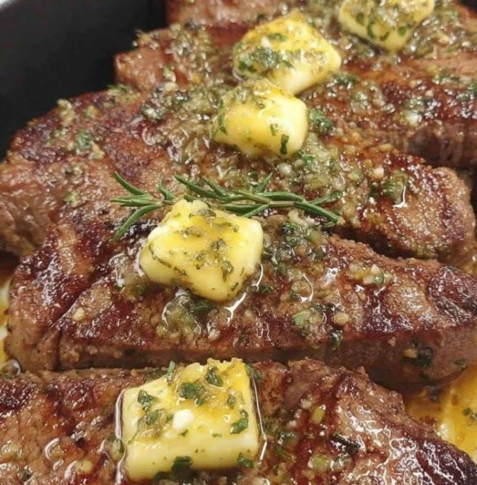 While steaks cook, mix softened butter with garlic, parsley, salt, and optional lemon juice.