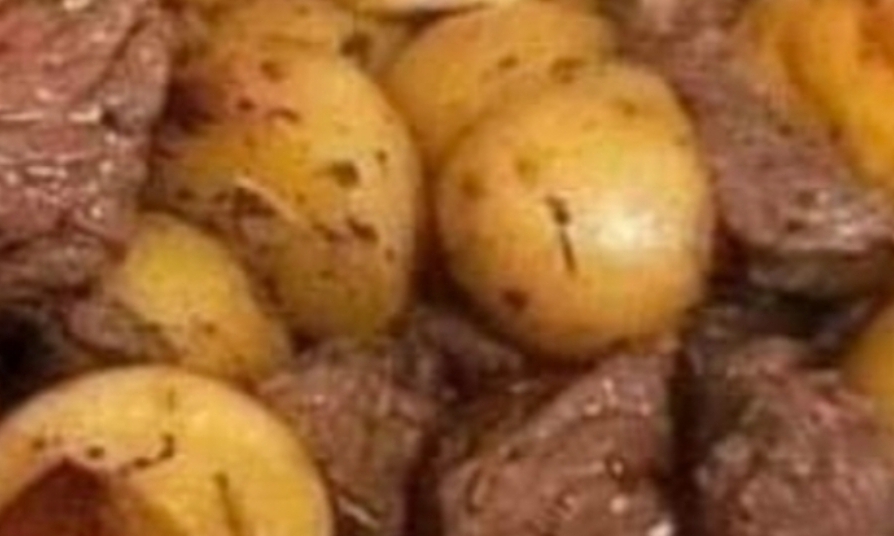 Just before the steak is cooked, add the remaining marinade sauce, and cook together for a minute. Return the potatoes to the pan to heat up. Seasoning with salt also black pepper to flavor.