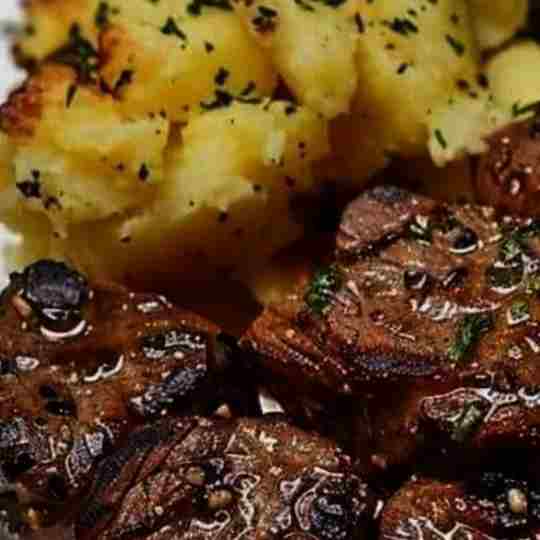Garlic Butter Steak Bites and Cheesy Smashed Potatoes