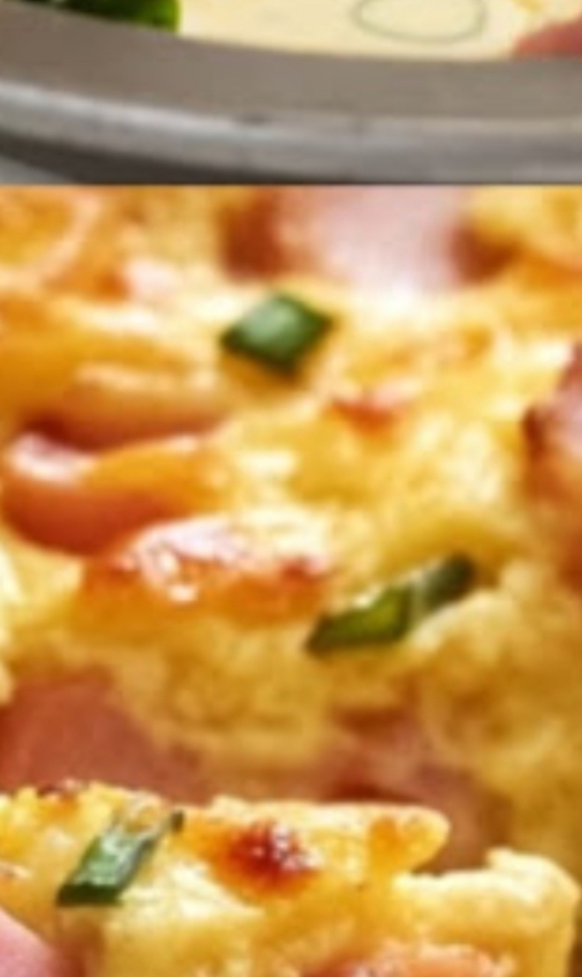 1. Spread the diced ham evenly across the bottom of the prepared pie dish.