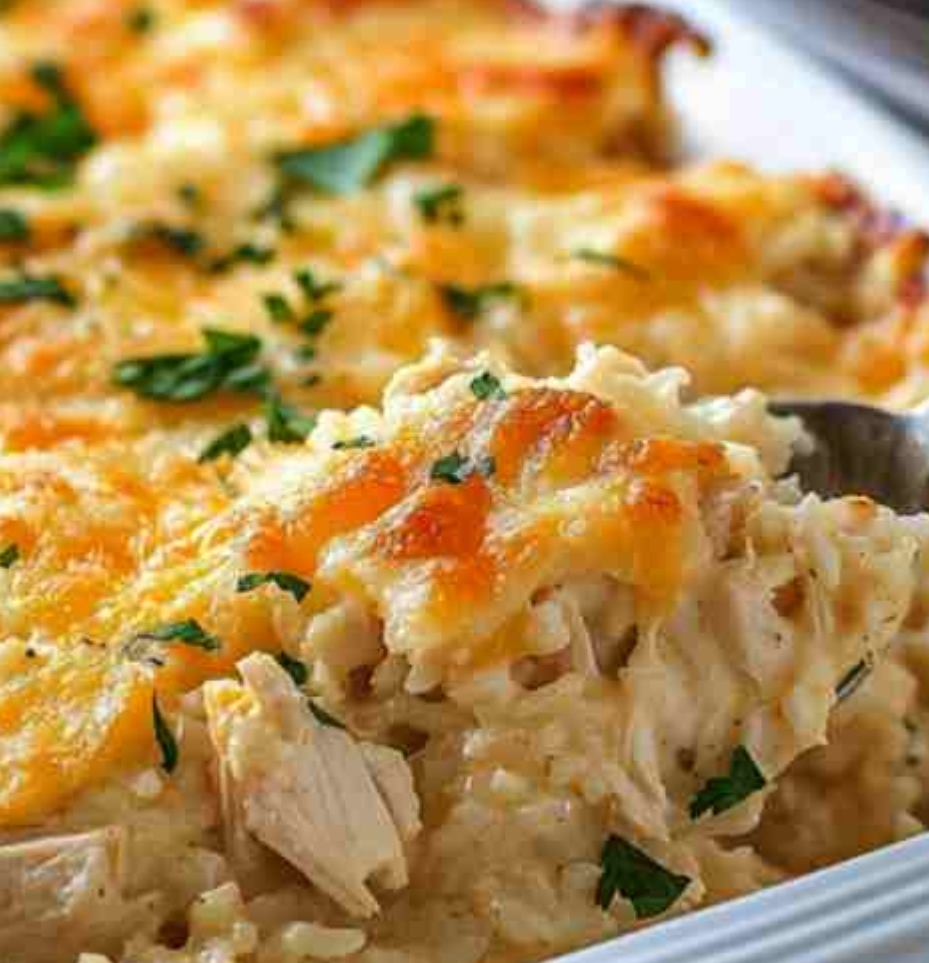 Ingredients:4 chicken breasts without bones or skin1 packet of powdered Italian salad dressing mix1 can of mushroom soup (10.75 ounces)1/2 cup of chicken broth 4 ounces of softened cream cheese1/2 cup of sour cream2 cups of cooked rice, either white or brown.1/4 cup of shredded Parmesan cheese 2 tablespoons of butter1 tablespoon of olive oil1 cup of grated mozzarella cheese1/4 teaspoon of black pepper 1/4 teaspoon of garlic powderFresh parsley, if desired, for decoration.Instructions:Heat your oven to 350°F (175°C) before using it.Cook the chicken: In a big pan, melt the butter and olive oil on medium heat. Put the chicken breasts in the pan with black pepper and garlic powder. Cook each side for 5-7 minutes until they are brown but not completely cooked. Take the chicken out of the pan and place it to the side.Make the sauce: In the same pan, put the Italian dressing mix, mushroom soup, chicken broth, cheese, and sour cream. Mix everything well until it is smooth and creamy. Let it cook gently for 3-5 minutes.Make Casserole: In a big baking dish (9×13 inches), put the cooked rice in an even layer at the bottom. Put the chicken breasts on the rice. Put the sauce on top of the chicken and rice, making sure everything is well coated.Put cheese on top: Spread Parmesan and mozzarella cheese on the casserole.Cook the casserole covered with foil in the oven for 25-30 minutes until the chicken is fully cooked (internal temperature of 165°F) and the casserole is bubbling.Serve: Add some fresh parsley on top if you like. Enjoy your Angel Chicken Rice Casserole hot!Tell me how it goes!Enjoy!