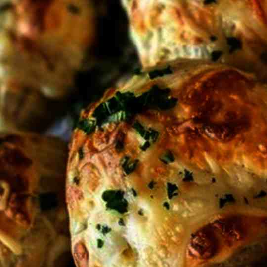 After that, top each cheese bomb with some grated Parmesan and brush with the garlic butter mixture.