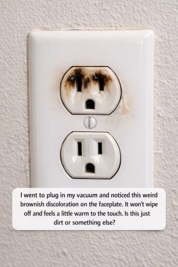 As I prepared for a routine cleaning day, I reached for my trusty vacuum cleaner. It was an ordinary task, but as I went to plug in the vacuum, I noticed something that made me pause. The faceplate of the outlet was marked with a peculiar brownish discoloration. Initially, I thought it might be dirt or dust, a common occurrence in any household.