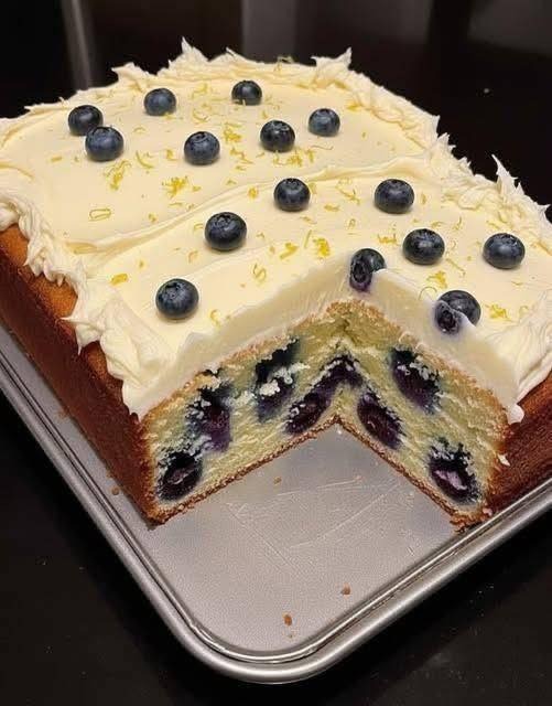 Beat until smooth + fluffy, spread on top, and garnish with a few blueberries + lemon zest.