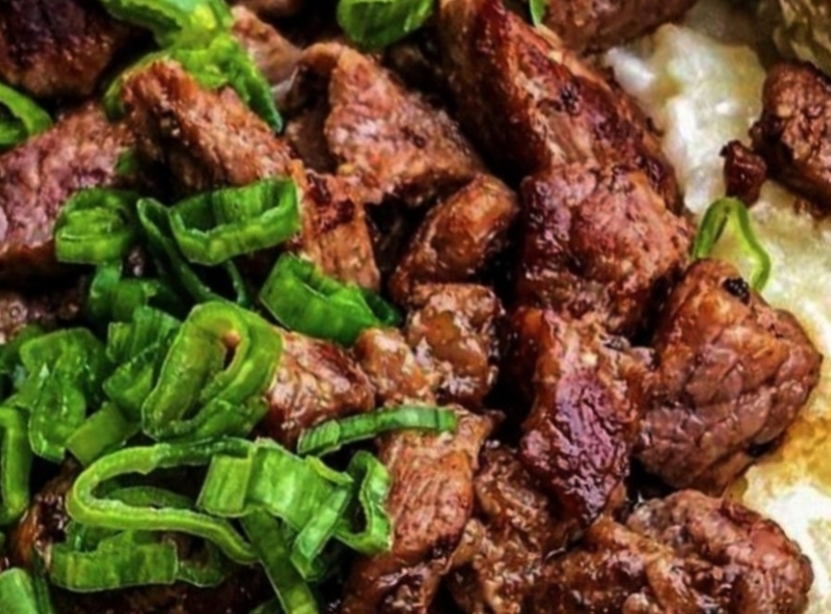 IngredientsFor the Potatoes:4 large russet potatoes1 tablespoon olive oilSalt and pepper to taste1 cup shredded cheddar cheese1/2 cup sour cream1/4 cup green onions (sliced)6 slices bacon (cooked and crumbled)2 tablespoons butter (optional for extra richness)For the Steak Bites:1 pound sirloin steak (cut into bite-sized pieces)2 tablespoons olive oil3 cloves garlic (minced)2 tablespoons unsalted butterSalt and pepper to taste1 teaspoon smoked paprika1 teaspoon onion powder1/4 teaspoon red pepper flakes (optional for spice)Fresh parsley (chopped, for garnish)Kitchen Equipment NeededBaking sheetSkillet (preferably cast iron)Aluminum foilTongs or spatulaKnife and cutting boardMixing bowlsPreparationStep 1: Bake the PotatoesPreheat your oven to 400°F (200°C). Wash the potatoes and pat them dry. Rub them with olive oil and sprinkle with salt and pepper. Pierce each potato several times with a fork, then place them directly on the oven rack or on a baking sheet. Bake for 45-60 minutes, or until the skin is crispy and the inside is tender when pierced with a fork.Step 2: Prepare the Steak BitesWhile the potatoes are baking, prepare the steak bites. Cut the sirloin steak into bite-sized cubes and season with salt, pepper, smoked paprika, onion powder, and red pepper flakes if using.Step 3: Sear the Steak BitesHeat a tablespoon of olive oil in a large skillet over medium-high heat. Once hot, add the steak bites in a single layer (work in batches if necessary to avoid overcrowding the pan). Sear the steak bites for 2-3 minutes on each side, or until browned and cooked to your desired doneness. Transfer the cooked steak bites to a plate and set aside.Step 4: Make the Garlic ButterIn the same skillet, lower the heat to medium and add the unsalted butter and minced garlic. Cook the garlic for about 30 seconds, stirring constantly to avoid burning. Once fragrant, return the steak bites to the skillet and toss to coat them in the garlic butter. Remove from heat and set aside.Step 5: Load the Baked PotatoesOnce the potatoes are fully baked, carefully slice them open down the center. Fluff the insides with a fork, then top each potato with butter (optional), shredded cheese, sour cream, crispy bacon, and green onions.Step 6: Top with Steak BitesPlace a generous serving of the garlic-butter steak bites on top of each loaded baked potato. Garnish with additional parsley and a pinch of salt and pepper if desired.Tips for Perfect Steak Bites and PotatoesChoose the Right Potatoes: Russet potatoes are best for baking because they have a high starch content and create a fluffy interior with a crispy skin.Get a Good Sear on the Steak: Make sure the skillet is hot before adding the steak bites. Searing them over high heat gives them a golden-brown crust and locks in the juices.Don’t Overcrowd the Pan: To ensure a good sear, cook the steak bites in batches if necessary. Overcrowding the pan will steam the steak instead of searing it.Use High-Quality Steak: Sirloin is a great cut for this recipe because it’s tender and flavorful, but you could also use ribeye or filet mignon for an even more indulgent meal.Recipe Variations and SwapsCheesy Potatoes: Mix in some extra cheese like gouda or mozzarella for an extra cheesy loaded potato experience.Add Veggies: Try adding some roasted or sautéed vegetables like mushrooms, onions, or bell peppers for an added layer of flavor.Spice It Up: For a bit of heat, you can add jalapeños or drizzle some hot sauce over the loaded potatoes.Swap the Steak: If you’re looking for a different protein, try using grilled chicken, pork bites, or even shrimp as a delicious topping.Serving SuggestionsThis Loaded Baked Potato with Steak Bites is a filling meal on its own, but here are a few ideas to make it a complete spread:Side Salad: A fresh green salad with a tangy vinaigrette balances the richness of the steak and potatoes.Grilled Vegetables: Serve with a side of grilled asparagus, broccoli, or Brussels sprouts for a nutritious and flavorful accompaniment.Wine Pairing: A bold red wine like Cabernet Sauvignon or a Malbec pairs wonderfully with the steak bites and rich toppings.How to Store and Reheat LeftoversStorage: Store any leftover steak bites and baked potatoes separately in airtight containers in the refrigerator for up to 3 days.Reheating: Reheat the baked potatoes in the oven at 350°F for about 10-15 minutes. For the steak bites, gently warm them in a skillet over medium heat, being careful not to overcook them and lose their tenderness.Freezing: While baked potatoes don’t freeze well, you can freeze leftover steak bites. Just be sure to freeze them in a single layer before transferring them to an airtight container or freezer bag. They’ll keep for up to 3 months.Why Loaded Baked Potato with Steak Bites is the Ultimate Comfort FoodThere’s something incredibly satisfying about the combination of a loaded baked potato and juicy steak bites. The crispy, fluffy potato is the perfect vehicle for the richness of melted cheese, sour cream, and butter, while the steak bites add a savory, hearty punch. This meal is indulgent without being overly complicated, making it the perfect comfort food for any occasion. Whether you’re serving it for a casual weeknight dinner or impressing guests with a steakhouse-style dish, this recipe is a surefire crowd-pleaser.Recipe Variations to Suit Your TasteHealthier Options: Swap the sour cream for Greek yogurt and use turkey bacon for a lighter version of this dish.Add Heat: Stir in some chipotle or hot sauce into the sour cream for a spicy kick.Herbed Butter: Mix fresh herbs like rosemary or thyme into the garlic butter for extra flavor.ConclusionThis Loaded Baked Potato with Steak Bites is a must-try for anyone who loves comfort food with a gourmet twist. It’s easy enough to make for a weeknight dinner but impressive enough to serve at a dinner party. The combination of savory steak bites, fluffy baked potatoes, and all the classic 