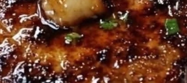 Pour half of the apple cider-infused honey-mustard mixture over the pork chops, spreading it out with a spoon.