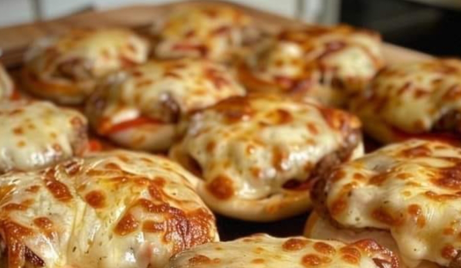 IngredientsFor the Burger Patties:1 pound ground beef (80/20 blend for juicier patties)1 teaspoon garlic powder1 teaspoon onion powder1 teaspoon dried oregano1 teaspoon salt1/2 teaspoon black pepper1/2 teaspoon crushed red pepper flakes (optional for a kick)1 tablespoon olive oil (for cooking)For Assembly:8 mini burger buns or slider buns1/2 cup pizza sauce (store-bought or homemade)1 1/2 cups shredded mozzarella cheese16-24 slices of pepperoni (or any favorite pizza toppings like mushrooms, bell peppers, olives)2 tablespoons butter (melted)1 teaspoon garlic powder (for garlic butter topping)1 tablespoon fresh basil or parsley, chopped (for garnish)InstructionsPrepare the Burger Patties:In a large bowl, combine the ground beef, garlic powder, onion powder, oregano, salt, black pepper, and crushed red pepper flakes (if using). Mix until the seasonings are evenly incorporated.Shape the ground beef mixture into 8 small patties, about the size of your mini buns.2. Cook the Patties:Heat the olive oil in a large skillet over medium-high heat.Cook the mini patties for 3-4 minutes on each side, or until they are cooked through to your desired doneness. (For medium, the internal temperature should be about 160°F or 71°C.)Remove the patties from the skillet and set them aside on a plate to rest.3. Assemble the Mini Pizza Burgers:Preheat your oven to 400°F (200°C).Place the bottom halves of the mini buns on a baking sheet lined with parchment paper.Spread a tablespoon of pizza sauce on each bun, then place a cooked burger patty on top.Add a generous sprinkle of shredded mozzarella cheese over each patty.Top the cheese with 2-3 slices of pepperoni (or other toppings like mushrooms, bell peppers, or olives).4. Bake the Burgers:Place the assembled burgers in the preheated oven and bake for 5-7 minutes, or until the cheese is melted and bubbly.While the burgers are baking, mix the melted butter with the garlic powder to create a garlic butter topping.5. Finish and Serve:Remove the burgers from the oven and brush the top halves of the buns with the garlic butter mixture.Place the garlic-buttered top buns on the burgers and sprinkle with fresh basil or parsley for a burst of flavor.Serve hot with a side of marinara sauce for dipping, if desired.Tips:Toppings: Get creative with your favorite pizza toppings. Try sautéed mushrooms, caramelized onions, black olives, or even jalapeños for extra flavor.Cheese Variations: You can switch up the cheese by using provolone, cheddar, or a mix of Italian cheeses for a different twist.Garlic Butter: If you’re a garlic lover, feel free to add a bit more garlic powder to the butter or even sprinkle a little Parmesan cheese on top for an extra kick.ConclusionThese Mini Pizza Burgers combine the best of pizza and burgers in one delicious bite! Juicy beef patties, cheesy goodness, and savory pizza sauce all packed into a mini bun make these perfect for any occasion. They’re fun to make and even more fun to eat! Enjoy them as appetizers, party snacks, or a family dinner that’s sure to impress.