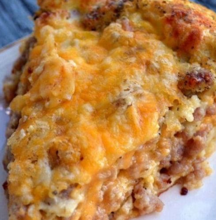In a small bowl combine the milk eggs biscuit mix sage and pepper. Pour over sausage mixture.