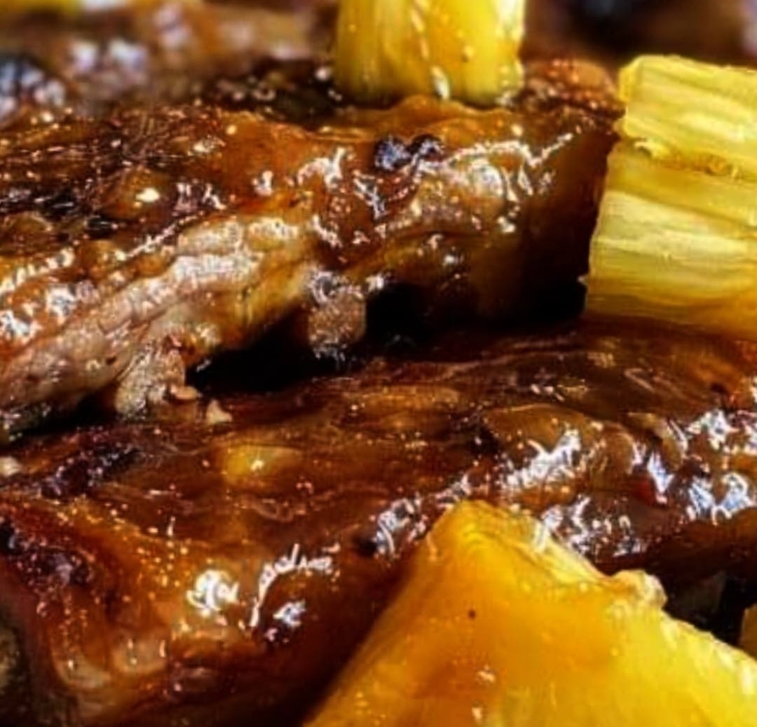 8. Make sure the ribs are well covered with the thickened sauce before serving by brushing it over them.Changes and HintsSlap on some hot sauce or a teaspoon of crushed red pepper flakes for a hotter sensation. You may easily use beef ribs for the pork in this recipe; just modify the cooking time to suit your preference. In the final hour of cooking, you may add some slices of pineapple for a more tropical flavor.