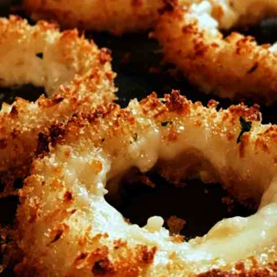 Mozzarella onion rings baked in the oven. Serves: 4 people.