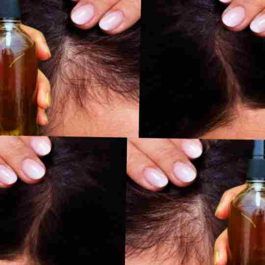 Distribute the blend evenly across your scalp and hair, massaging gently in circular motions, focusing on areas experiencing thinning or loss.