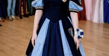 My daughter sewed her prom dress from her late father’s police uniform. When a mean classmate poured punch on it,…