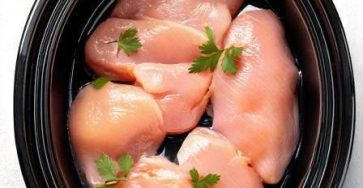 Put raw chicken breasts in a slow cooker with these 4 ingredients. It’s pure magic.