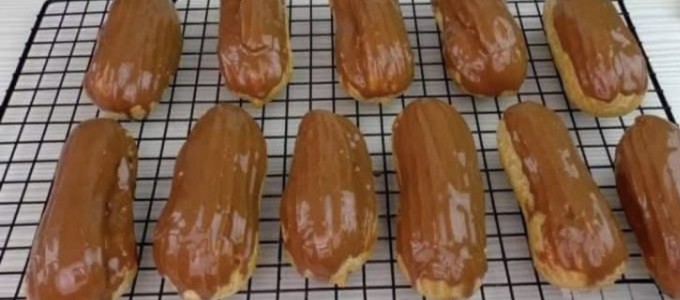 - Place the finished eclairs on a cooling rack or plate, and let the glaze set before serving.