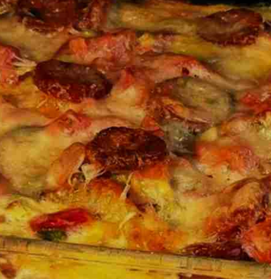 4 chicken eggs200 g sour creamA bunch of spring onions1 tomato500 g potatoes2 hunting sausages50 g hard Parmesan cheeseSalt to tasteGround black pepper to tasteDried ground oregano to tasteDried ground sweet paprika to tasteSome vegetable oilIngredients for the Sauce:60 g sour cream40 g mayonnaiseA bunch of dill1 cucumber3 cloves of garlicSalt to tasteGround black pepper to tasteDirections:Preparation:Preheat your oven to 180°C (355°F).Peel and slice the potatoes into thin rounds.Slice the spring onions and tomato.Slice the hunting sausages.Grate the Parmesan cheese.Making the Potato and Sausage Bake:In a large mixing bowl, whisk together the eggs, 200 g sour cream, salt, and black pepper.Add the sliced spring onions and mix well.Grease a baking dish with vegetable oil.Layer the potato slices at the bottom of the dish.Pour a bit of the egg and sour cream mixture over the potatoes.Add a layer of tomato slices and hunting sausages.Sprinkle with dried oregano and sweet paprika.Repeat the layers until all ingredients are used, ending with a layer of the egg mixture.Top with grated Parmesan cheese.Bake in the preheated oven for 25 minutes.Preparing the Sauce:While the bake is in the oven, prepare the sauce.In a small bowl, combine 60 g sour cream and 40 g mayonnaise.Finely chop the dill and cucumber.Mince the garlic cloves.Mix the dill, cucumber, and garlic into the sour cream and mayonnaise mixture.Season with salt and black pepper to taste.Final Steps:After the initial 25 minutes of baking, add the sliced sausages on top of the bake.Return to the oven and bake for an additional 20 minutes until golden and bubbly.Remove from the oven and let it cool slightly before serving.Serving Suggestions:Serve the potato and sausage bake hot with a generous dollop of the sour cream sauce on the side.Pair with a fresh green salad for a complete meal.Cooking Tips:Make sure to slice the potatoes evenly for even cooking.You can substitute hunting sausages with any other favorite sausage type.Nutritional Benefits:This dish provides a good balance of protein from the eggs and sausages and carbohydrates from the potatoes.The sour cream sauce adds healthy fats and freshness from the cucumber and dill.Dietary Information:Contains dairy and eggs.Suitable for a hearty, protein-rich meal.Storage:Store any leftovers in an airtight container in the refrigerator for up to 3 days.Reheat in the oven or microwave before serving.Why You’ll Love This Recipe:It’s a delicious and filling dish that’s easy to prepare.Perfect for a family dinner or meal prep for the week.The creamy sauce adds a refreshing contrast to the savory bake.Conclusion: Enjoy making and indulging in this flavorful potato and sausage bake. The combination of hearty ingredients and creamy sauce will surely become a favorite in your household. Happy cooking and bon appétit!Enjoy!