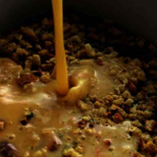 Combine all ingredients (leaving out some of the stuffing mixture) and pour over the chicken. Adding more stuffing mix on top.