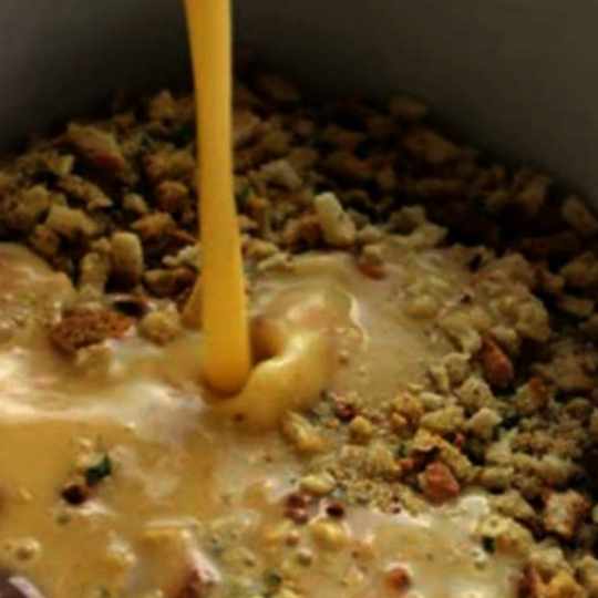 Combine all ingredients (leaving out some of the stuffing mixture) and pour over the chicken. Adding more stuffing mix on top.