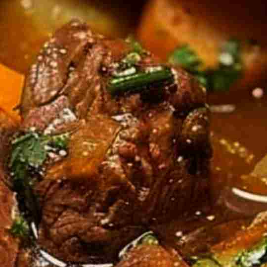 2 livres de viande de ragoût de bœuf, coupée en cubes de 1 pouce– 3 cuillères à soupe d’huile d’olive– 1 gros oignon haché– 3 gousses d’ail hachées– 4 tasses de bouillon de bœuf– 1 tasse de vin rouge (facultatif)– 3 grosses carottes tranchées– 3 grosses pommes de terre pelées et coupées en cubes– 2 branches de céleri tranchées– 1 cuillère à soupe de concentré de tomate– 1 cuillère à café de thym séché– 1 cuillère à café de romarin séché– 2 feuilles de laurier– Sel et poivre au goût– 2 cuillères à soupe de farine tout usage (facultatif, pour épaissir )– Persil frais haché (pour la garniture)– Pain croustillant (pour le service)