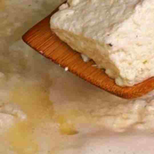 6. Press the Cheese: To form the cheese into a more solid mass, place it (still in the cheesecloth) under a weight for several hours or overnight in the refrigerator.